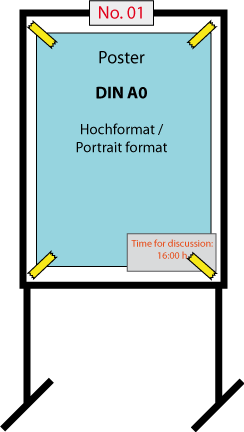 Autoren werden gebeten, ihre Plakate am Morgen ihrer Poster-Sitzung anzubringen. Jedes Poster hat eine Nummer gemäß dem wissenschaftlichen Programm, die wiederum einer Nummer auf der Posterwand entspricht. Das Posterformat ist 85 cm Breite und 120 cm Höhe (DIN A0), Hochformat! Autoren werden gebeten, mindestens die Hälfte der Zeit ihrer Session für Diskussionen bei ihrem Poster zur Verfügung zu stehen. Bitte vergessen Sie nicht, Ihre Poster am Ende der Poster-Session zu entfernen, wenn Sie dies behalten möchten, andernfalls werden die Poster ca. eine Stunde nach Veranstaltungsende entsorgt.
